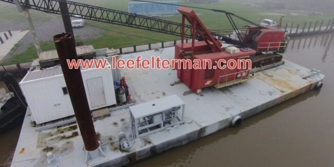 Asking Price: $450,000. (Including crane) Type: Spud/Crane Barge Size: 130′ x 34′ x 7′ Raked bow & stern Year Built: 1980’s Spuds: (2) – 14” x 50’ Hydraulic Pulling Unit with winche Day Quarters/Office Crane: Linkbelt LS 408 Fuel Capacity: 3,000 gallons Fresh Water Capacity: 3,000 gallons Generator: (2) – 15kw Living Quarters for 6…