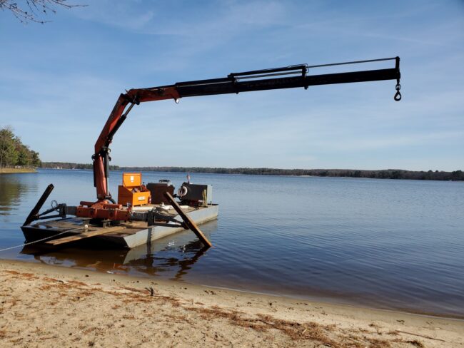 Asking Price: $530,000. (Includes barge, crane & tug) Size: 110′ x 30′ x 7′ Spud Barge including crane and tug Raked bow, Square stern Barge Year Built: 2008 Spuds: (2) – 40’ John Deere Hydraulic Pulling Unit Pull master 12,000 lb winches Crane: 40-ton Sumitomo Boom length: 90’ Tug: 45’ x 15’ Main Engines: (2)…