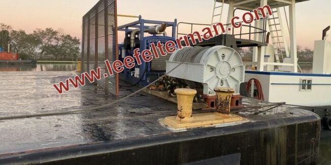 Asking Price: $475,000. Type: Crane / Spud / Dredge / Quarters Barge Size: 150′ x 52′ x 8.5’ Draft: 7’ Year Built: 1969 Builder: Ingram Marine GRT: 698 Fuel Capacity: 30,000 gallons Water Capacity: 30,000 gallons Generators: (2) 40kw Bunks: 18 Galley: yes Crane: Clyde Whirley Model 28 160’ boom 150T capacity Dredge Dig Depth…