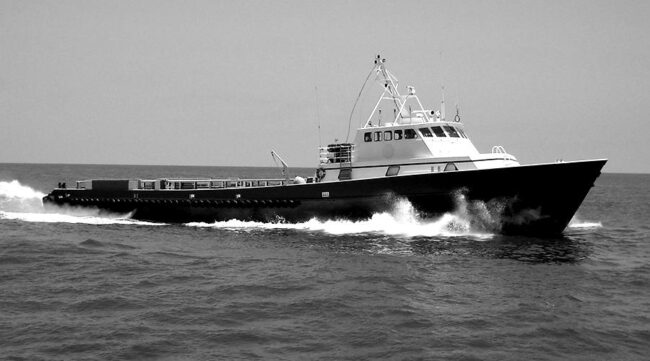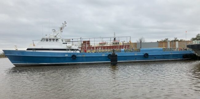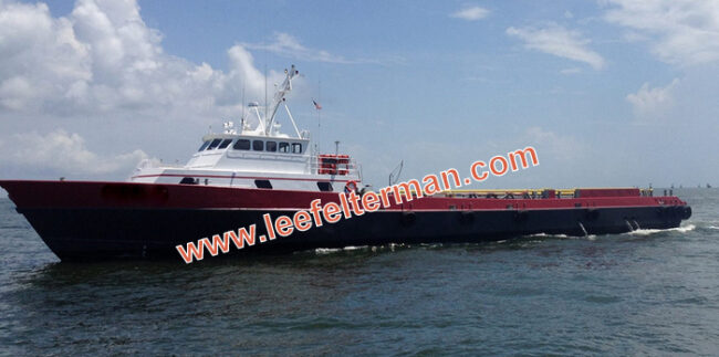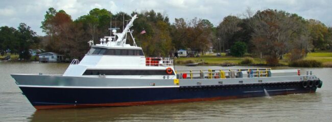 Asking Price: $1,750,000. Size: 145’ x 27’ x 11’9” Type: Aluminum Crew boat Year Built: 1997 Certifications: Current Flag: USA Gross Tons: under 100 Max Speed: 25 knots Passengers: 56 Bunks: 9 Deck Space: 85’ x 21’ Deck Capacity: 140 Long Tons Fuel Capacity: 16,000 gallons Water Capacity: 18,500 gallons A/C & Heat: Central Main…