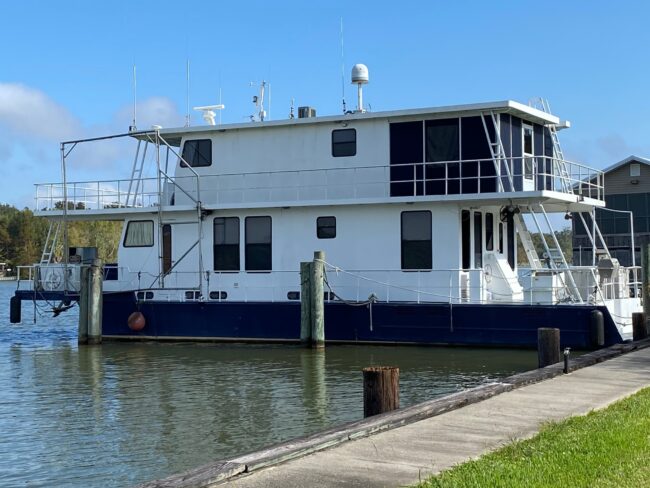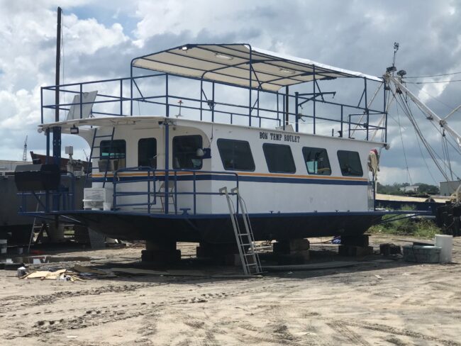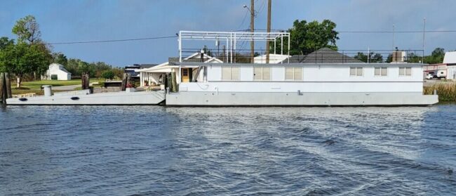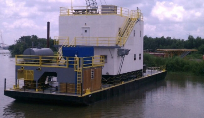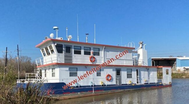 Asking Price: $750,000 Type: Steel Barge with Living Quarters Size: 160’ x 42’ x 8’ Built: 1979 Builder: Cenac Shipyard Spuds: (2) 24” diameter x 40’ L Spud Engine: Electric over hydraulic Generator(s): (1) – Stamford 100kw Fuel Capacity: 25,000 gallons Water Capacity: 60,000 gallons Staterooms / Berths: 13 / 56 Galley / mess area…